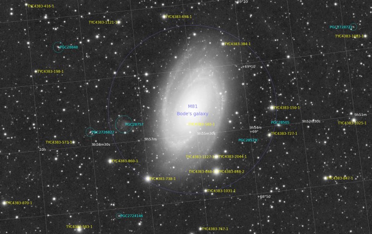 M81 fait partie d’un groupe d’une quarantaine de galaxies : M82, NGC 2403, IC 2574, …